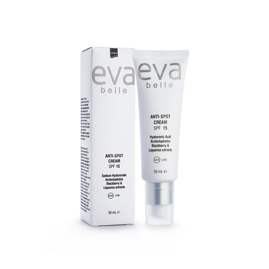 EVA Belle Anti – Spot Cream is a specialized cream for the prevention and treatment of the dark spots. Due to its active complex (Arcostaphylos, black berry and liquorice) and the clinically proven effective ingredients, it repairs dark spots and offers even skin tone and radiance.