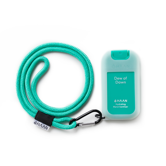 Clean your hands anytime and anywhere, with this cool and convenient accessory. Inspired by our Dew of Dawn fragrance, this Case + Lanyard brings a pop of green freshness to your daily outfits while providing the safety and functionality needed in a modern busy lifestyle. Hands-free has never looked this good!