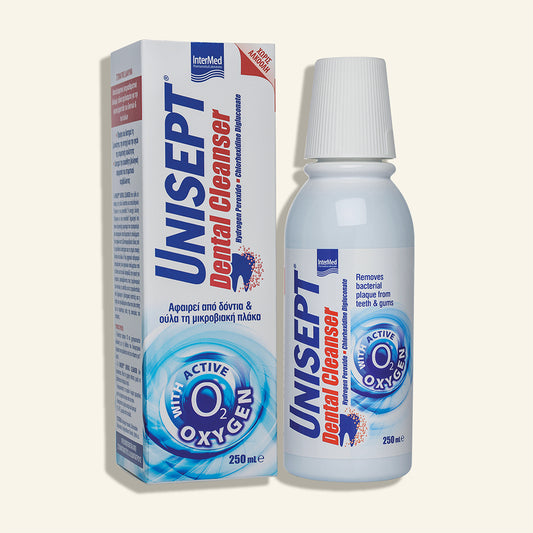 Unisept Mouthwash is a uniquely designed daily mouthwash, which thanks to active oxygen it offers cleansing, antimicrobial and healing action. It contributes in this way to daily hygiene care & protection of the mouth. Promotes the healing process and relieves discomfort that can cause cancer sores, ulcers & wounds of the oral cavity of any etiology.