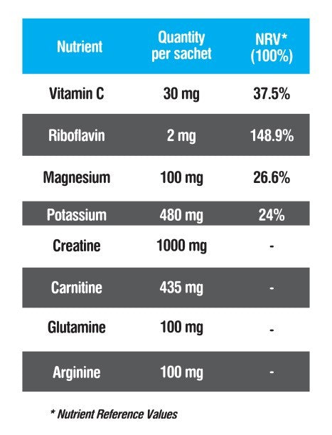 • Creatine & L- Carnitine to increase muscle mass and develop endurance