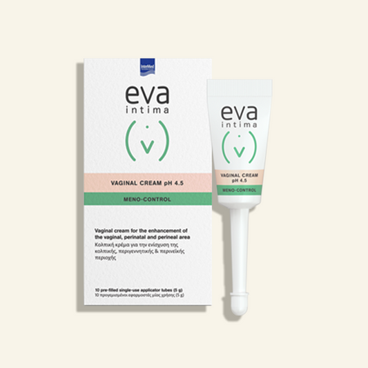Eva Intima Vaginal Cream is an innovative product for the natural regeneration and enhancement of the elasticity and supportive capacity of the vaginal, perinatal and perineal tissues. Its effective composition based on soy isoflavones (phytoestrogens), collagen of marine origin and hyaluronic acid directly and physically compensates for the loss of these elements by the tissues of the area during the peri- menopausal period and restores their elasticity.