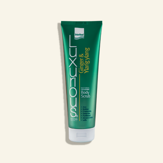 Luxurious Natural Exfoliating Body Scrub is the skin’s best friend. Due to its penetrating action, it stimulates and rejuvenates the skin from the inside, removing dead skin cells and reconstructing the skin tissue. Its unique formula of herbal extracts and skin-tonic vitamins is supported by strong exfoliating action of almond and luffa, thus giving unmatched radiance and wellbeing to the skin.